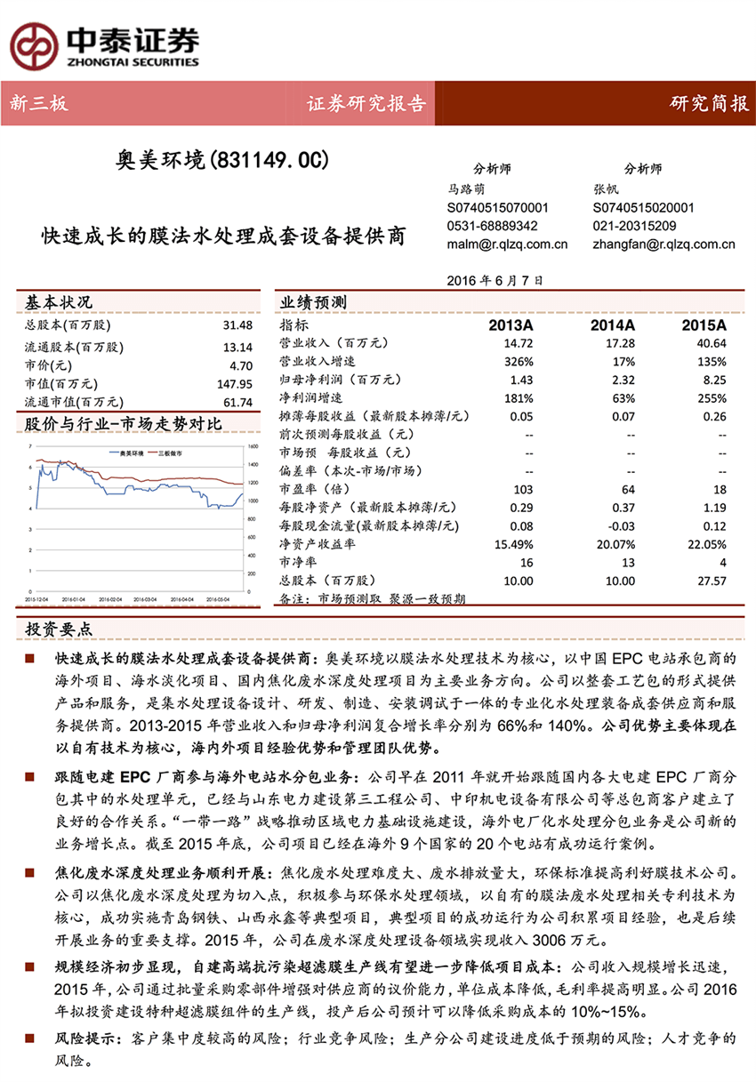 查看原始文檔: 奧美環(huán)境快速成長(zhǎng)的膜法水處理成套設(shè)備提供商